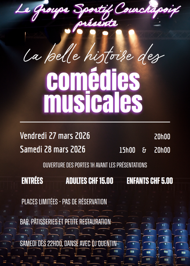Bienvenue sur le site du Groupe Sportif Courchapoix ! Accès MyGym pour les membres Venez découvrir notre spectacle 2026! Programme complet Depuis 1984, le GSCPX s'efforce de faire bouger le village! Vous pourrez ici trouver les offres de cours du GSCPX, ainsi que d’autres informations pertinentes, restez connectés, le site débute, d’autres fonctionnalités s’ajouteront. Ajoutez votre titre ici